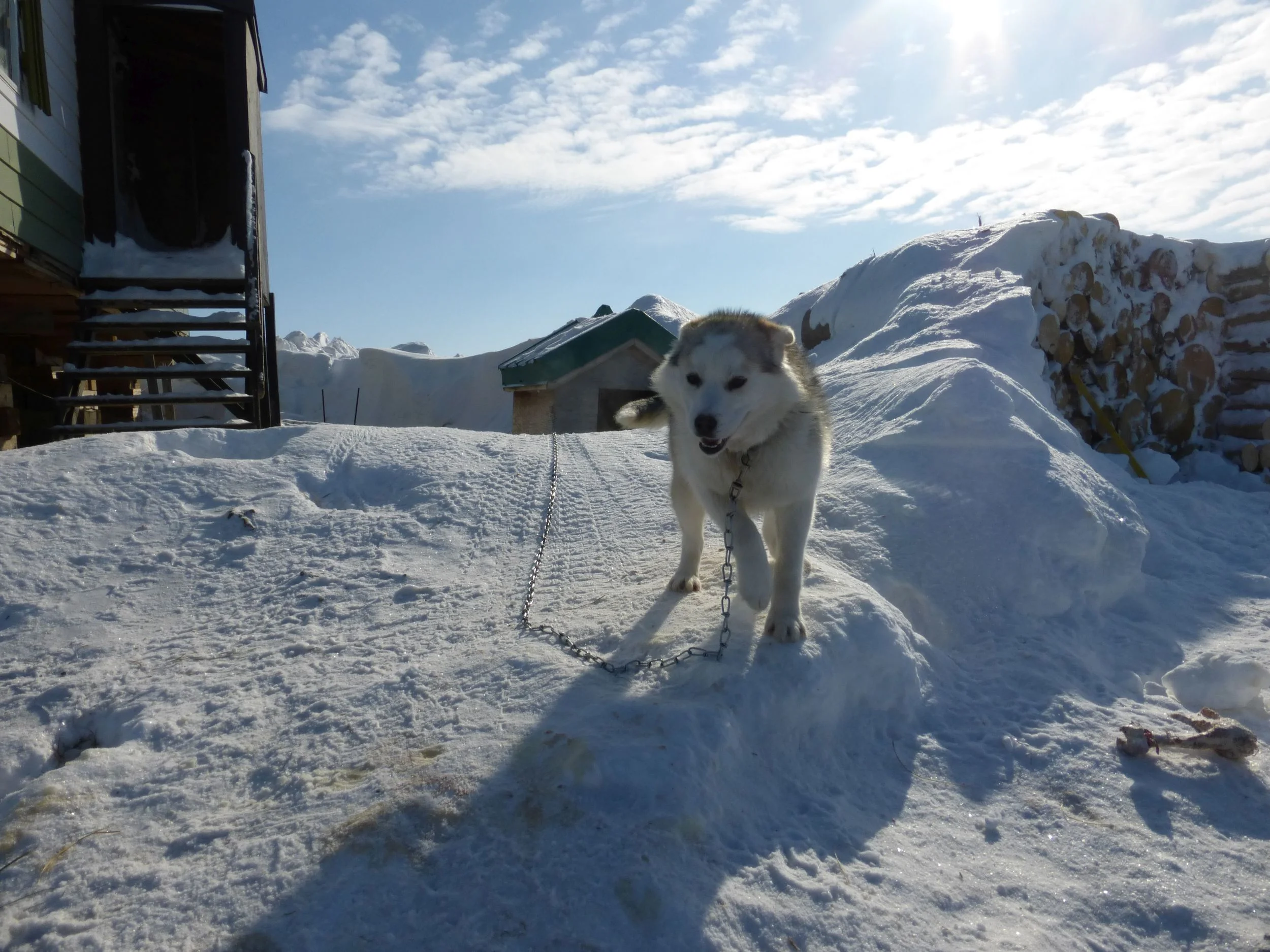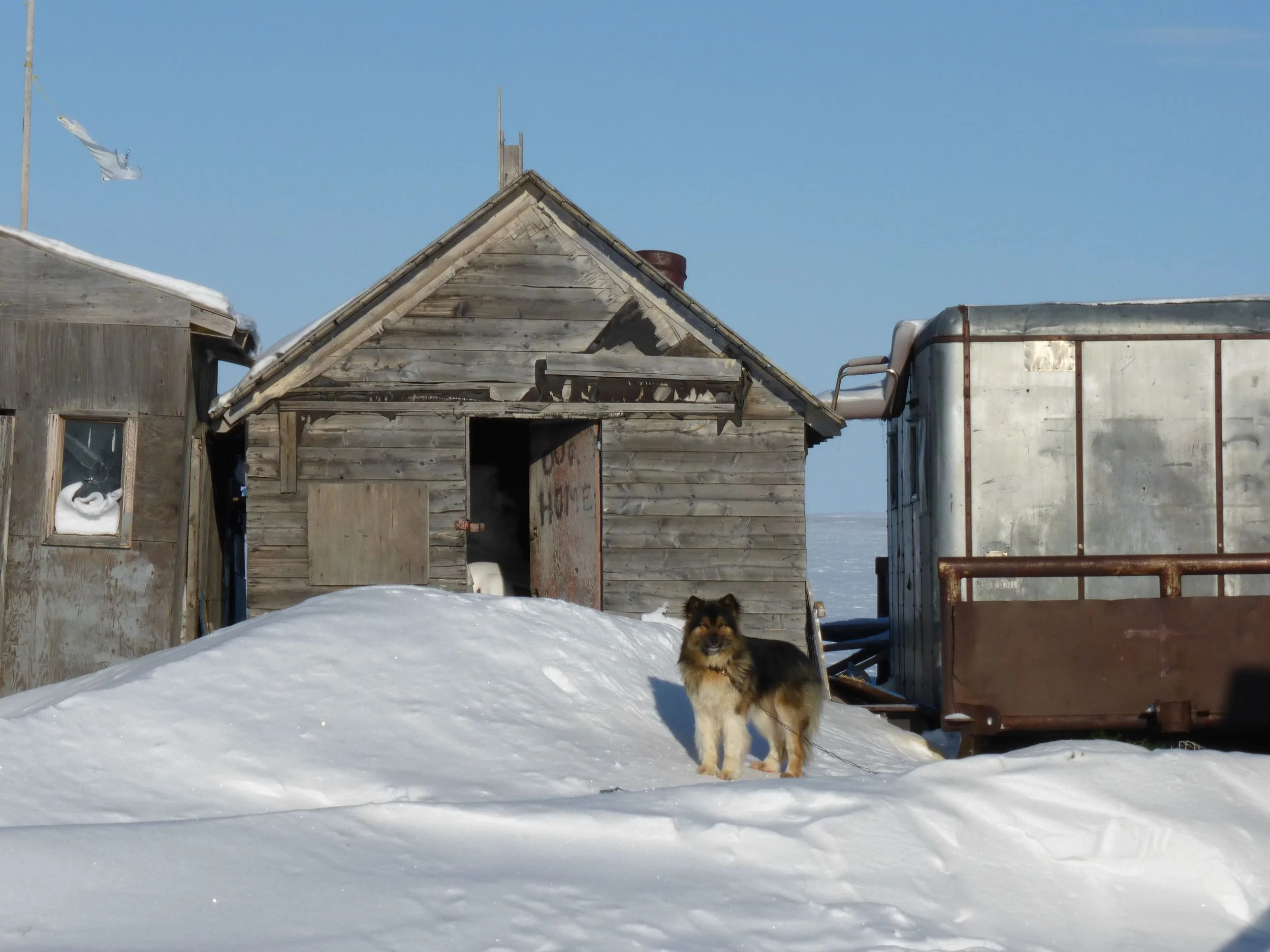 Left: At the background is the boat: "Out Lady of Lourdes" which was a church mission boat used to transport supplies and people in the area. It's last voyage at sea was in the 1980's and it is now one of the very few tourist attractions of Tuk.