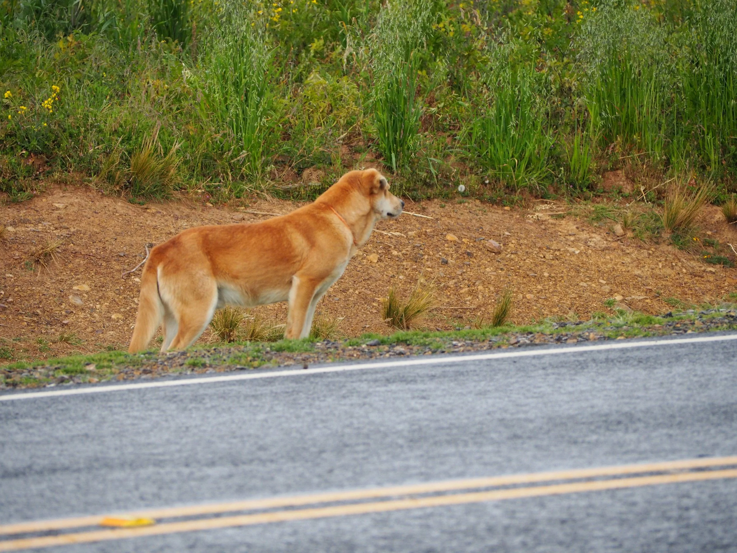The Dead Dog highway. Well at first I didnt understand why these dogs were just waiting by the road but every once in a while a piece of bread of garbage would fly out of a car or a minibus and they would go for it. These dog watchmen sit around all day watching all the cars go by and turn their heads with each passing car in hopes of food. Its a rough life out here but hey, they have found a way to make a living.
