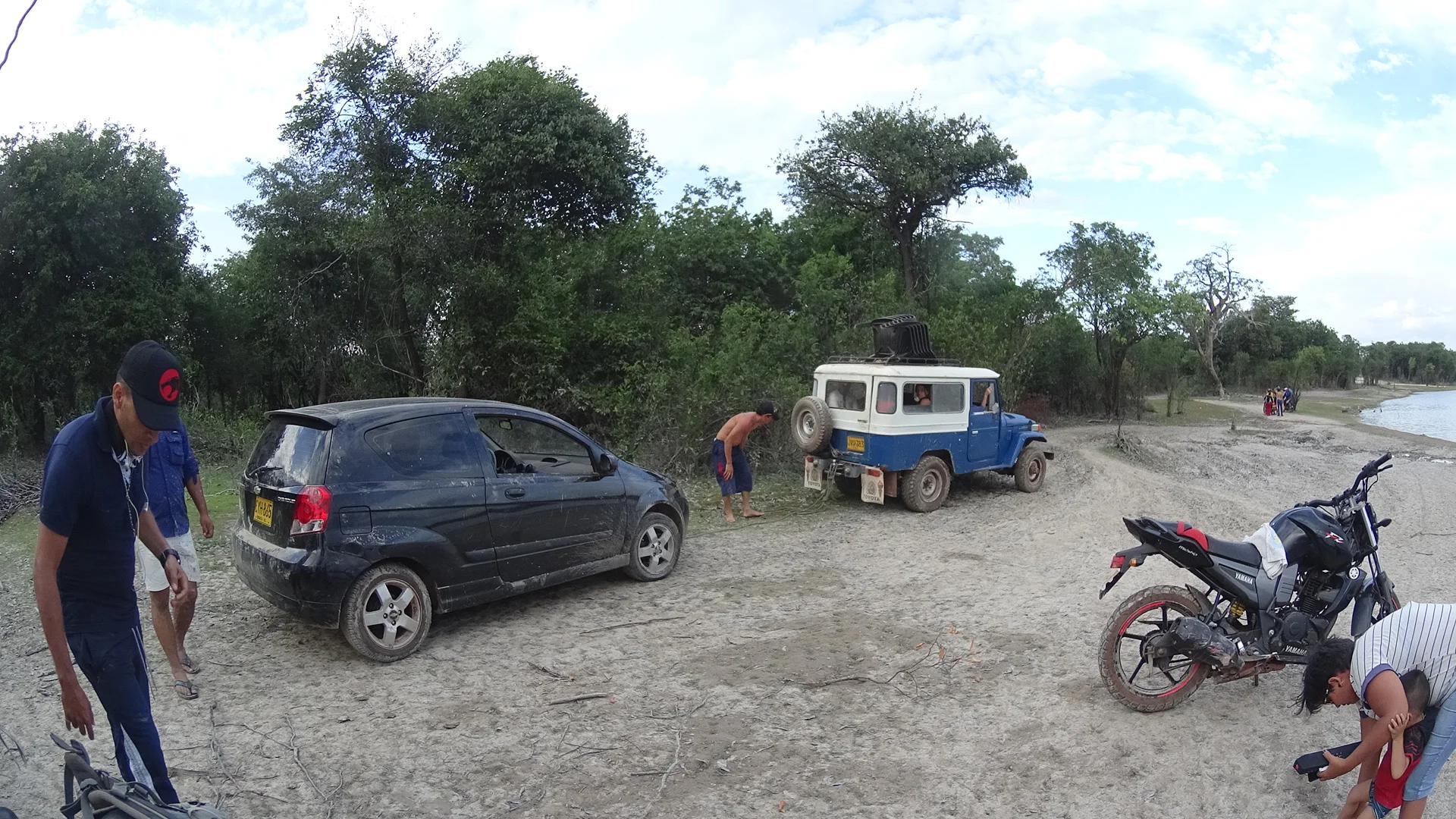The plan was to get a car, pick up Luises boat and go to the Vita river for the final. We sat on the empty road waiting for a truck but no luck, only a bunch of motos.