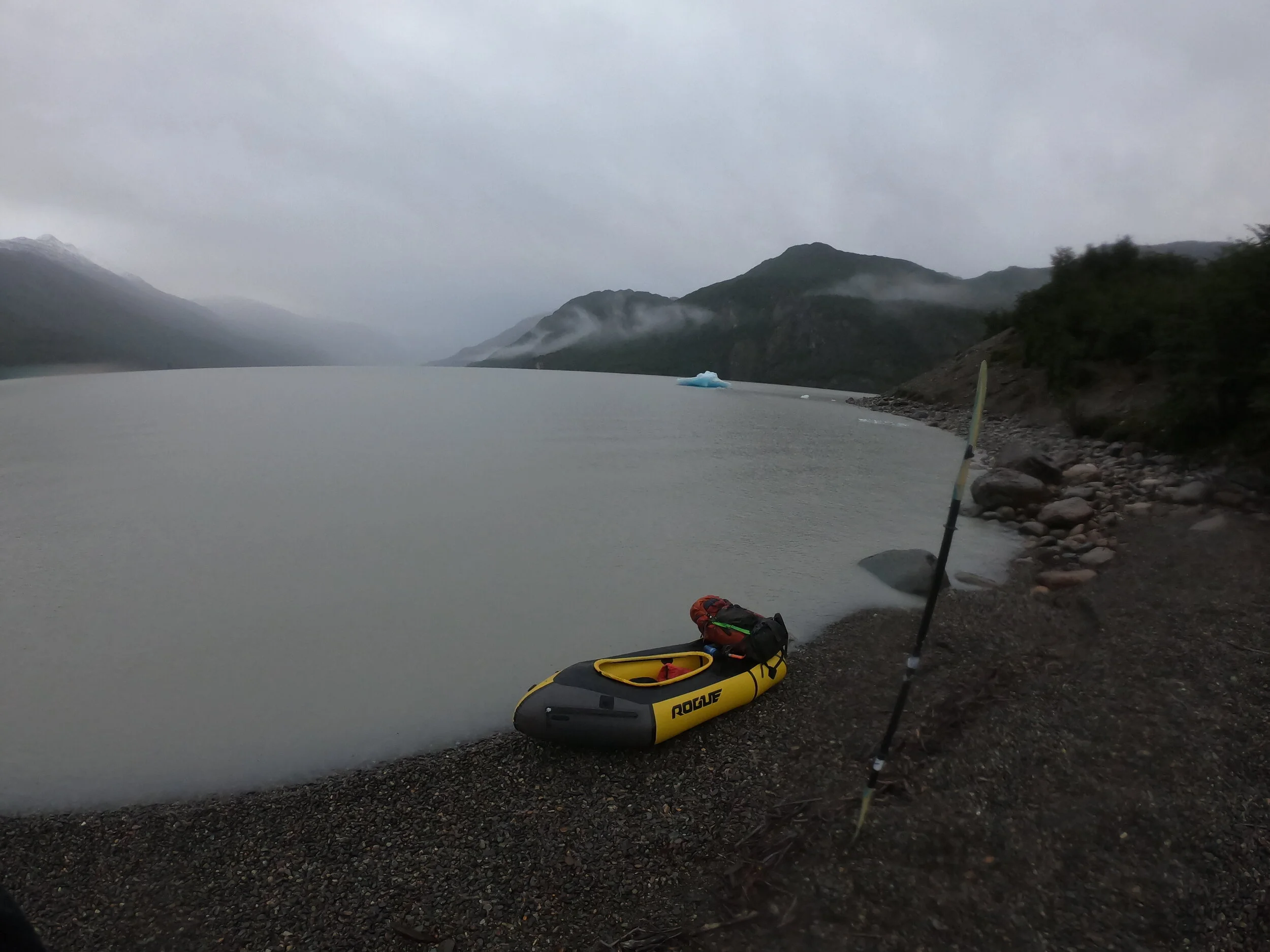 it rained cats and dogs all night but it also seemed quite calm. At 6am I was ready and walking with my boat to the lake and made my way to those icebergs & the Chico glacier with ease