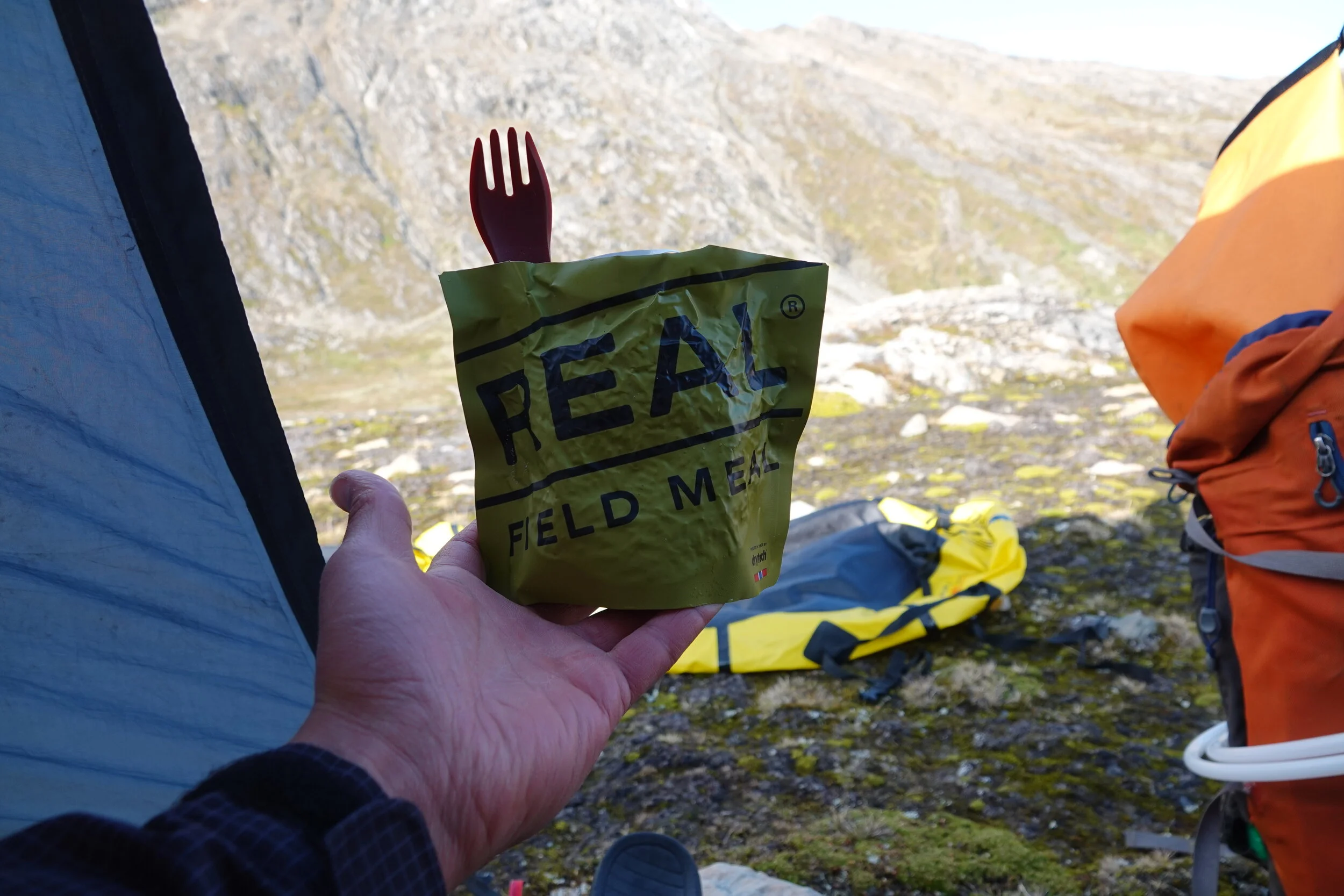 Food was low and I was finally opening one of the two dehydrated meals that a dutch hiker gave to me. Let me tell you the europeans have their stuff down! Meal is already vaccuum packed and has a second tear line so that you dont need to buy an extra long spoon to eat it.