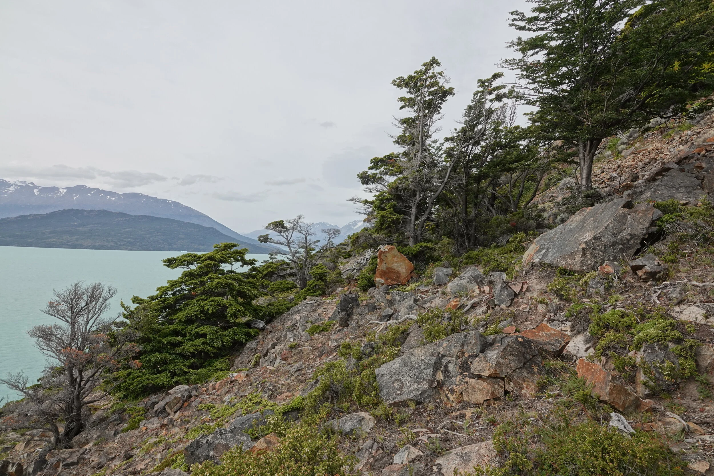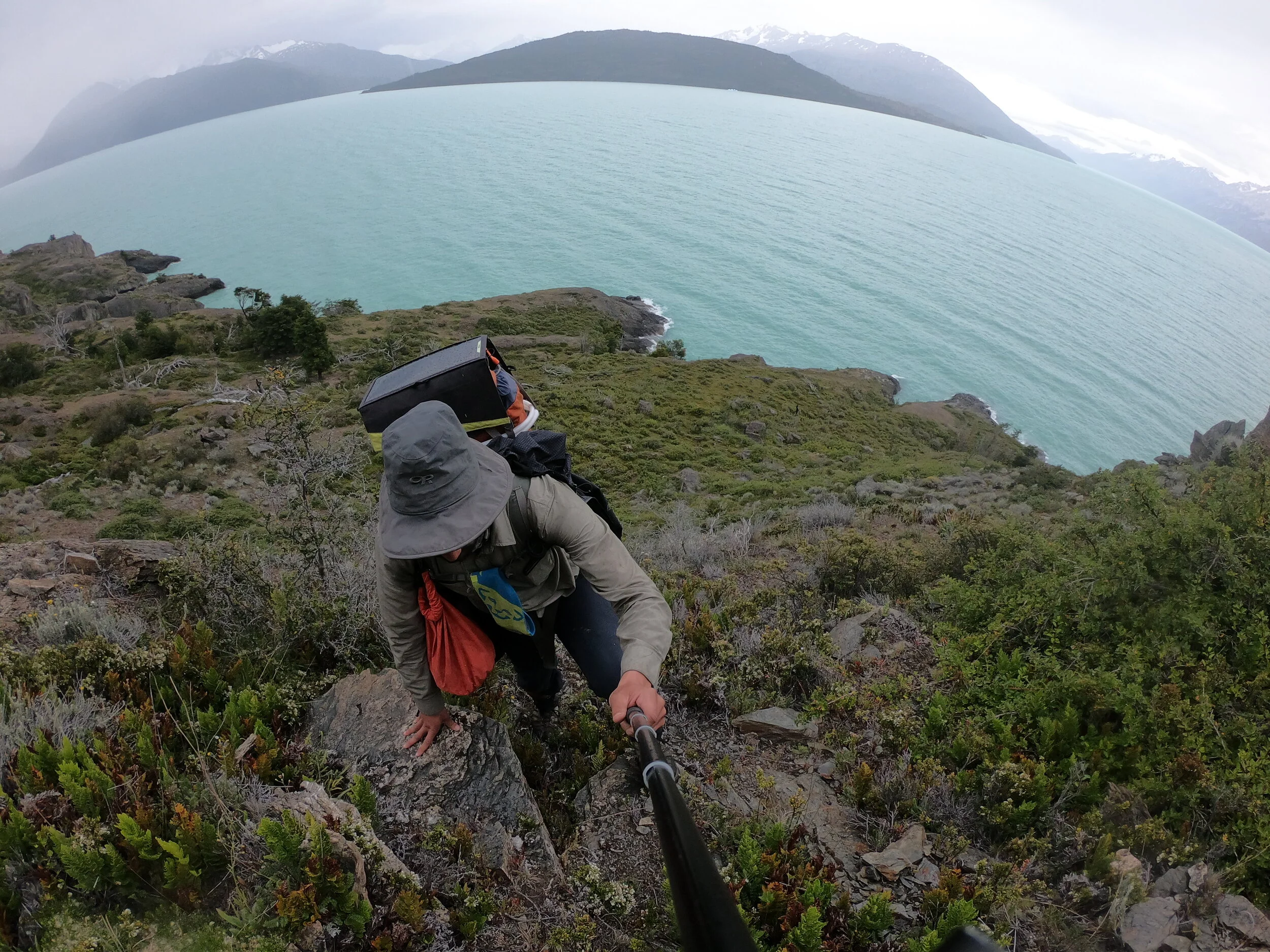 I take the day to climb the island and on the way I bring a radio with fresh batteries to Marcelo and his brother from nearby estancia who are building a fence here. They say that the next crossing is the worst and even the big boats offering tours of the glacier cross north of the island instead of heading directly to the south arms.
