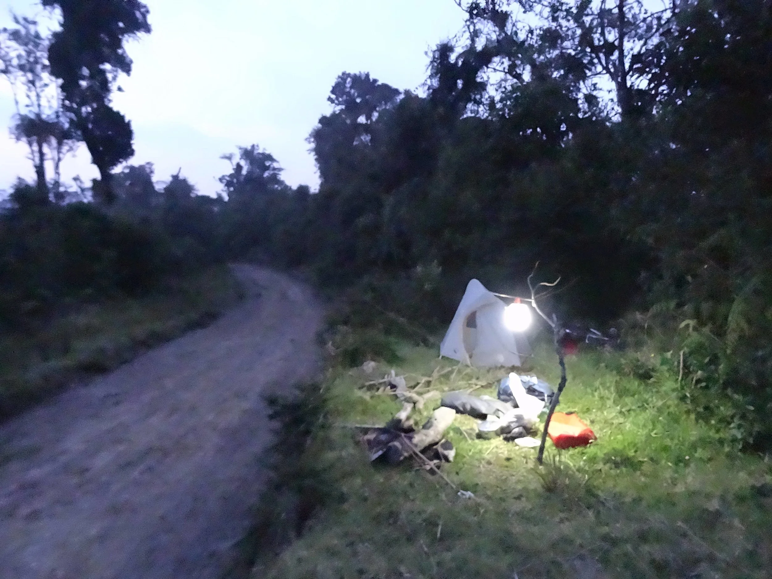 I pulled off to camp at 3200m but despite gathering the wood, it never got cold enough for a fire. Listening to the sounds of the forest under the full moon, I could not see any lights anywhere.