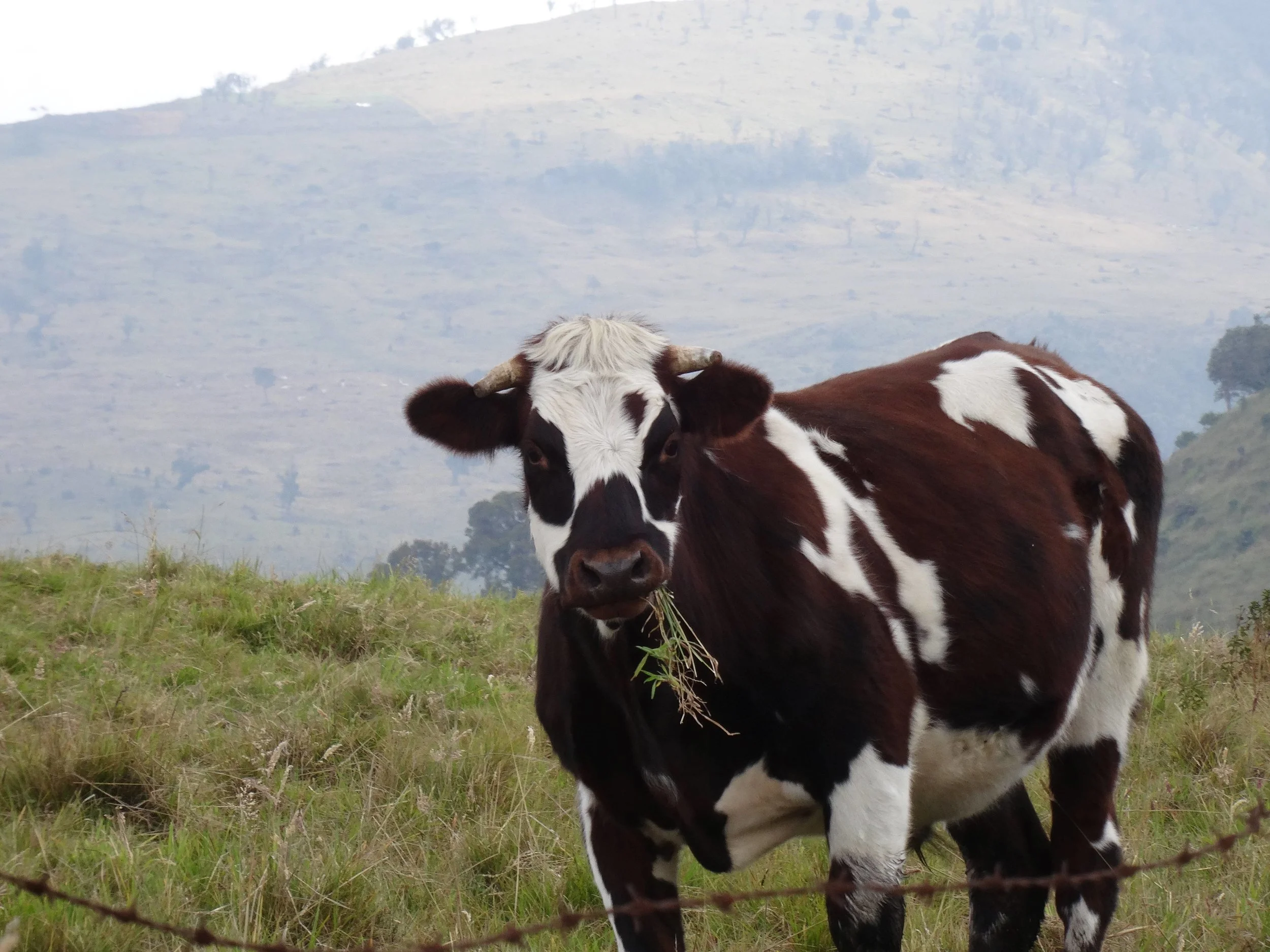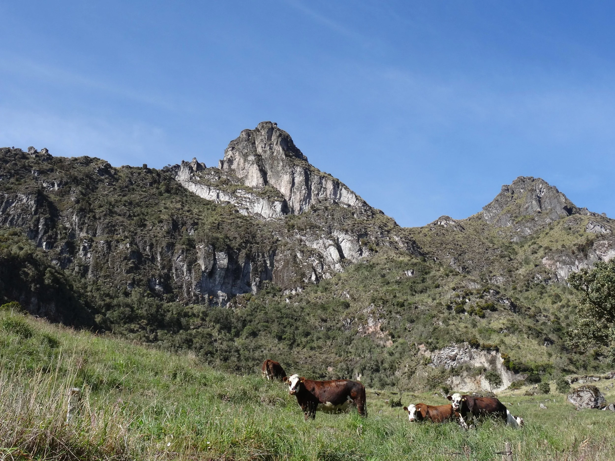 I continued riding through photogenic landscapes and unphotogenic cows with the smoking volcano in the distance. Nevado del Ruiz.