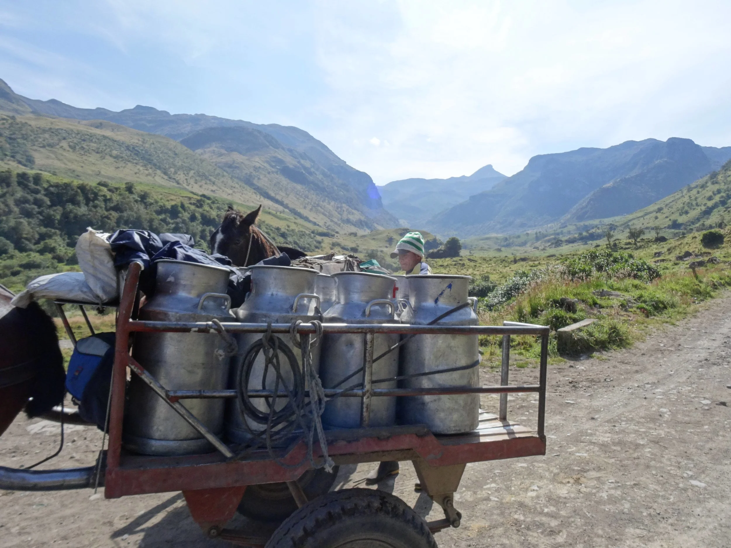 Back into cow territory, this kid pointed up to the hill indicating where all the camps are as he tied 40L jugs to the horse cart.