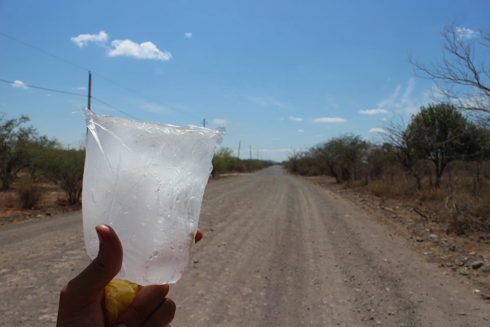 1 cordova (~5cents) per banana, 10 wouldlast me till lunch. The numbered highway turns out to be a dirt road and everybody I ask for directions or distance only tells me that its too far. A kid on a horse talks to me and we race to his house where I grab some water. With the heat and desperation, I buy a bag of ice. Not sure what to do with it, I stick it under my helmet. I look silly but it works.