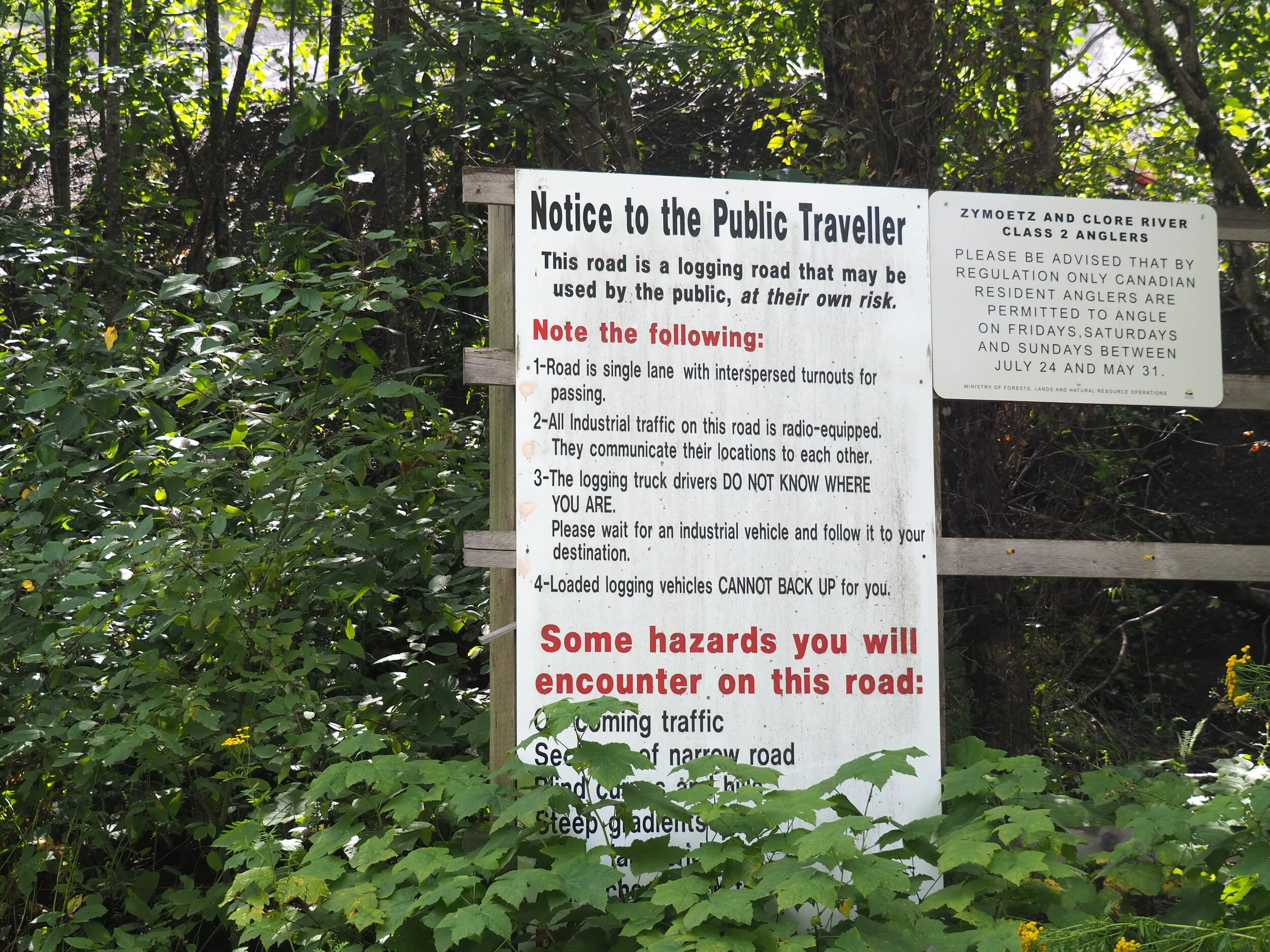I rolled toward the little town of houston for camping and a grocery stop. It was bustling with activity with the coastal gaslink pipeline, the old mill site now full of pipeline segments and various strongly worded signs warning of interferance with construction.