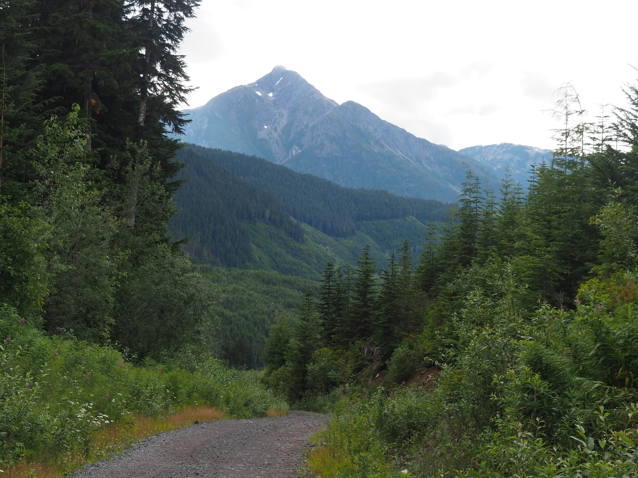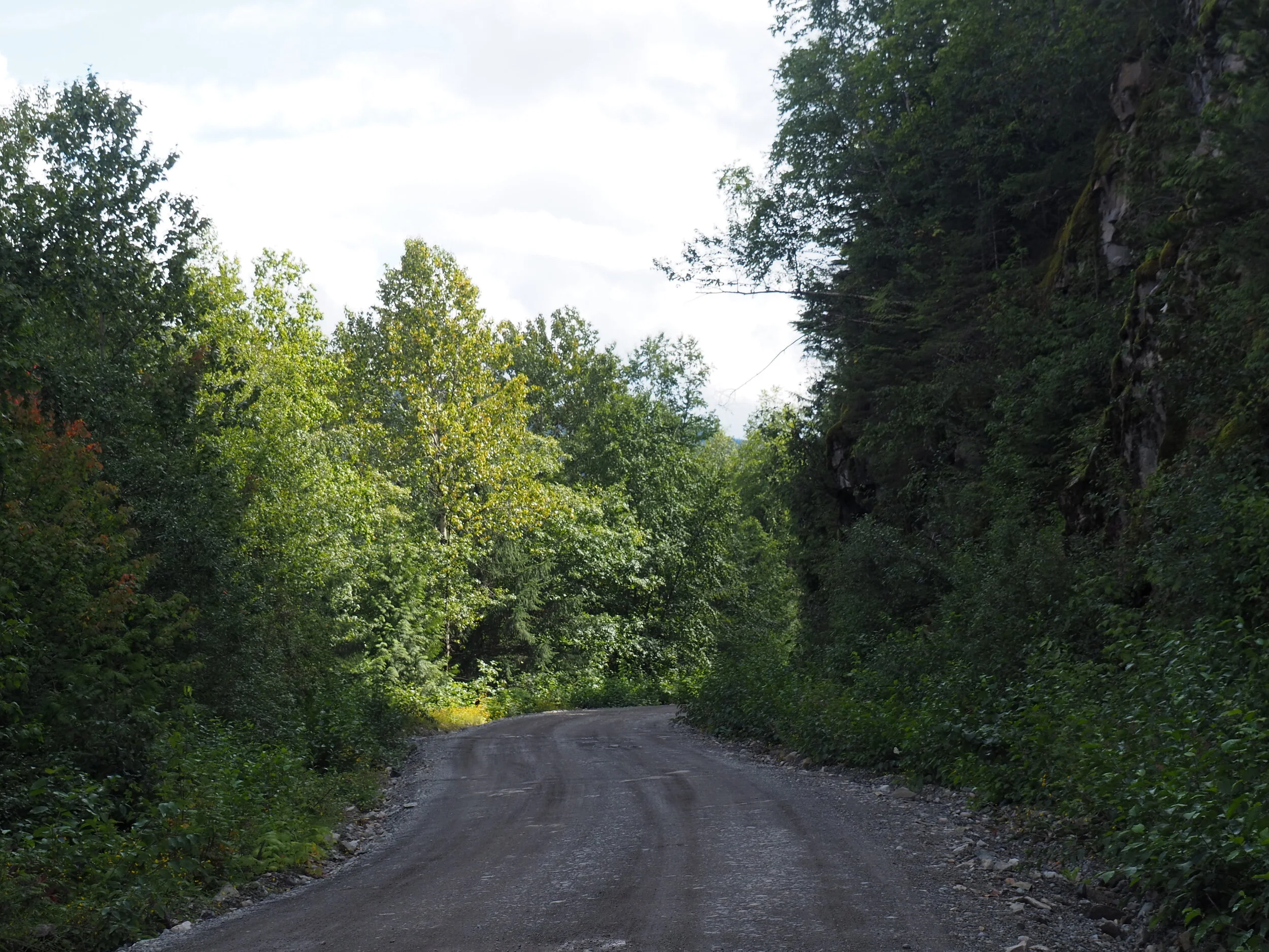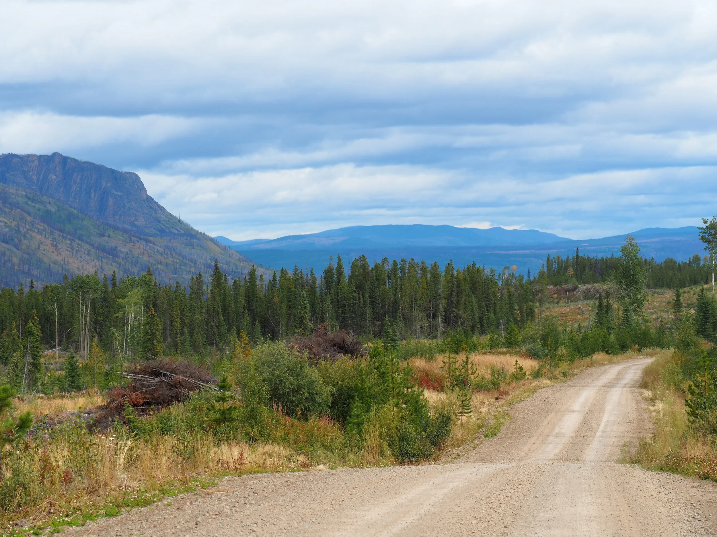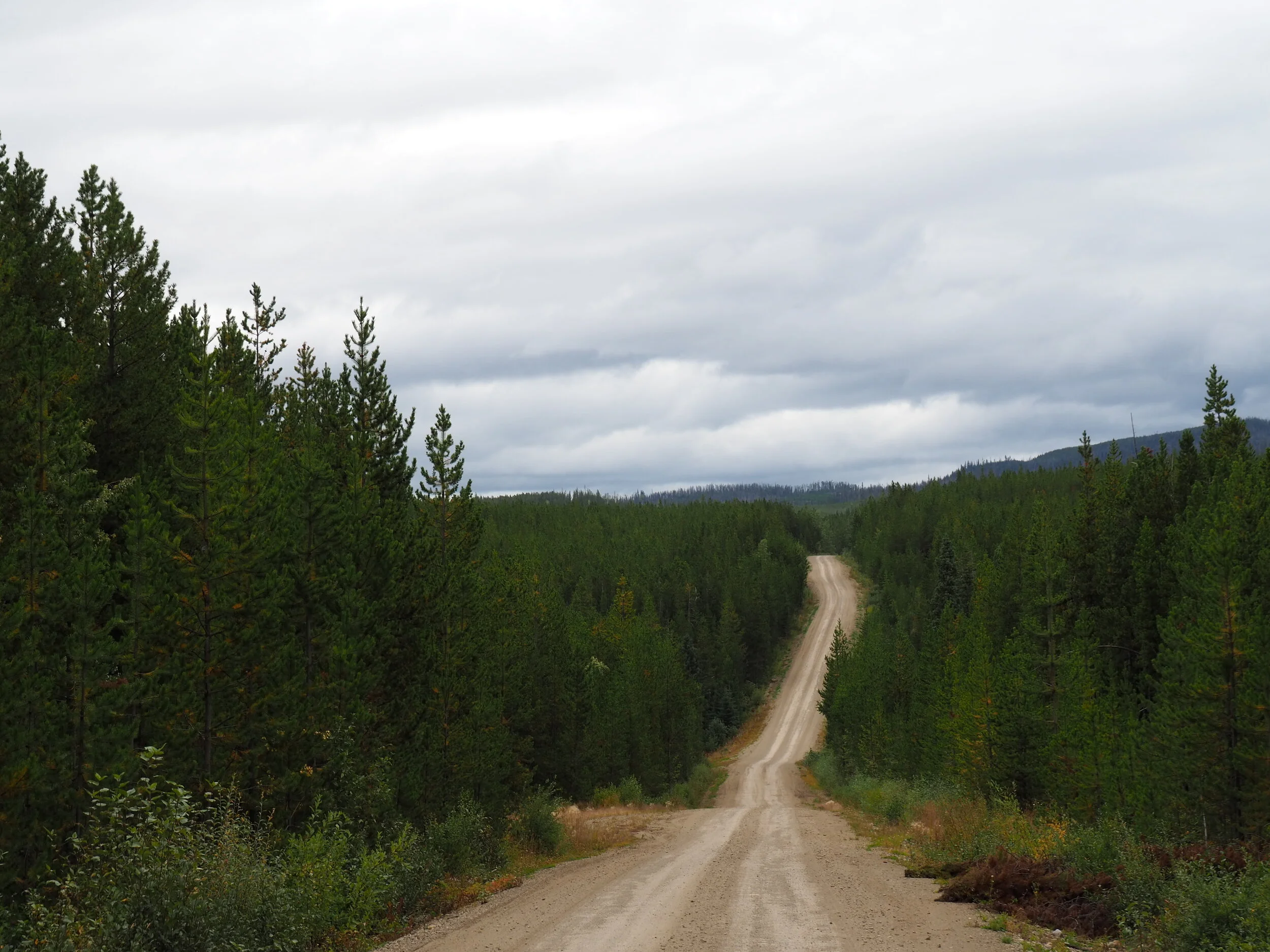 Having previously ridden most of the Yellowhead highway I would definitely avoid it. It has a good shoulder but definitely too much traffic. Leaving Terrace I headed toward a powerline road that should be able to take me near Smithers. There were few options to get into the alpine and I took the first road going up.