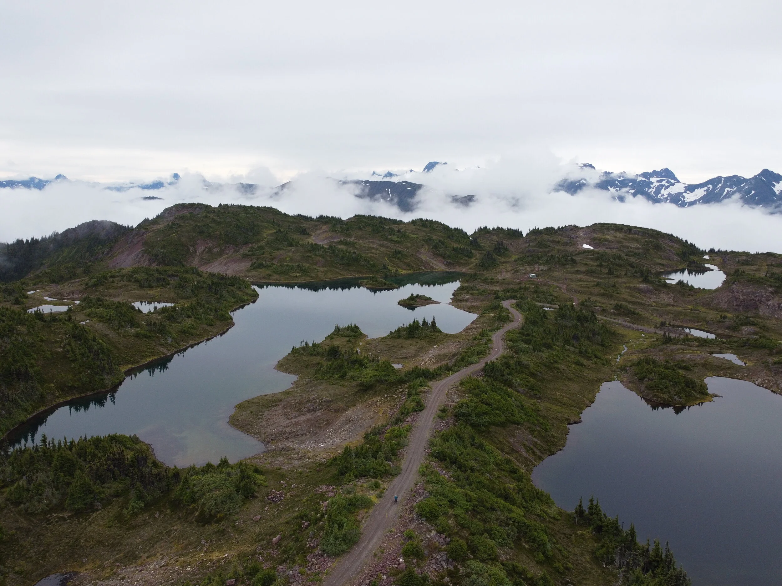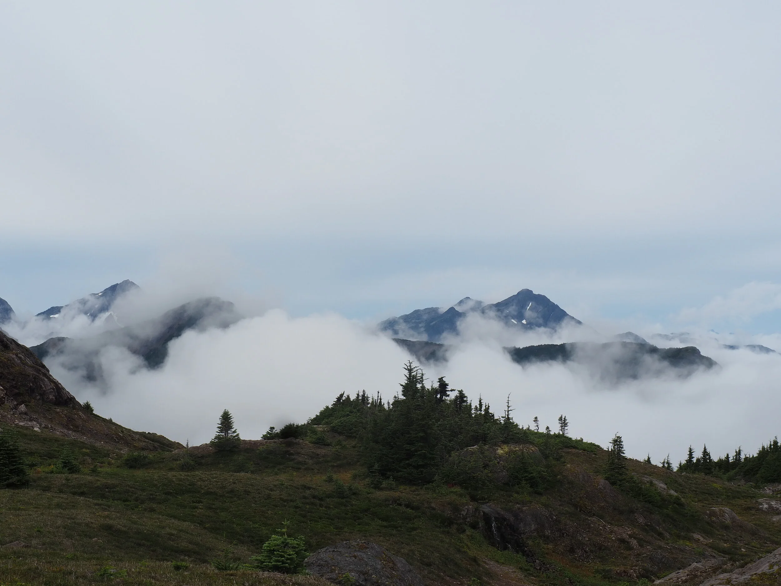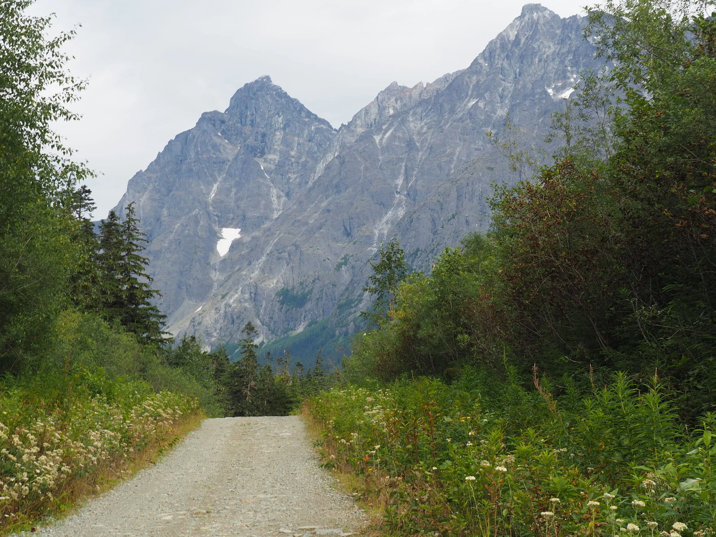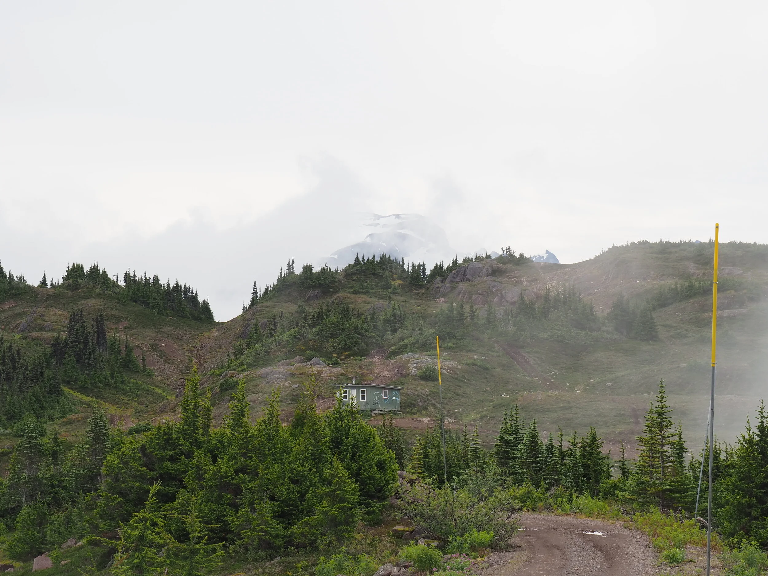 There was quite a bit of rain and some of the grades along the way were definitely not rideable. I was eventually happy to get on a real road and what I could see of the mountains was amazing but will have to wait for another time. I had few ambitious plans to connect trails to Smithers but with the rain, just getting somewhere drier would be better.