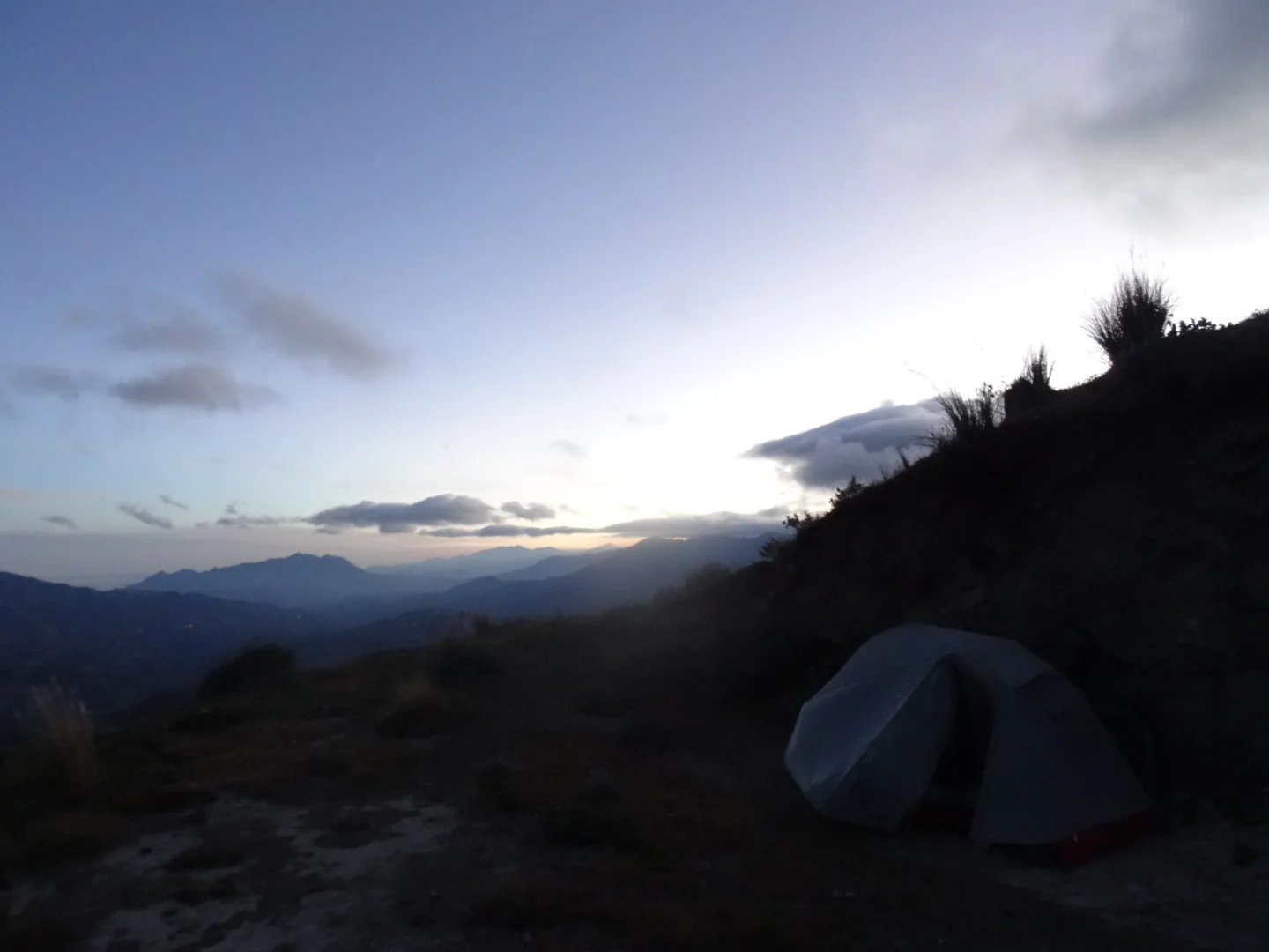 It would make sense to drop down a bit for a more sheltered spot but there was a half protected spot on the rim.