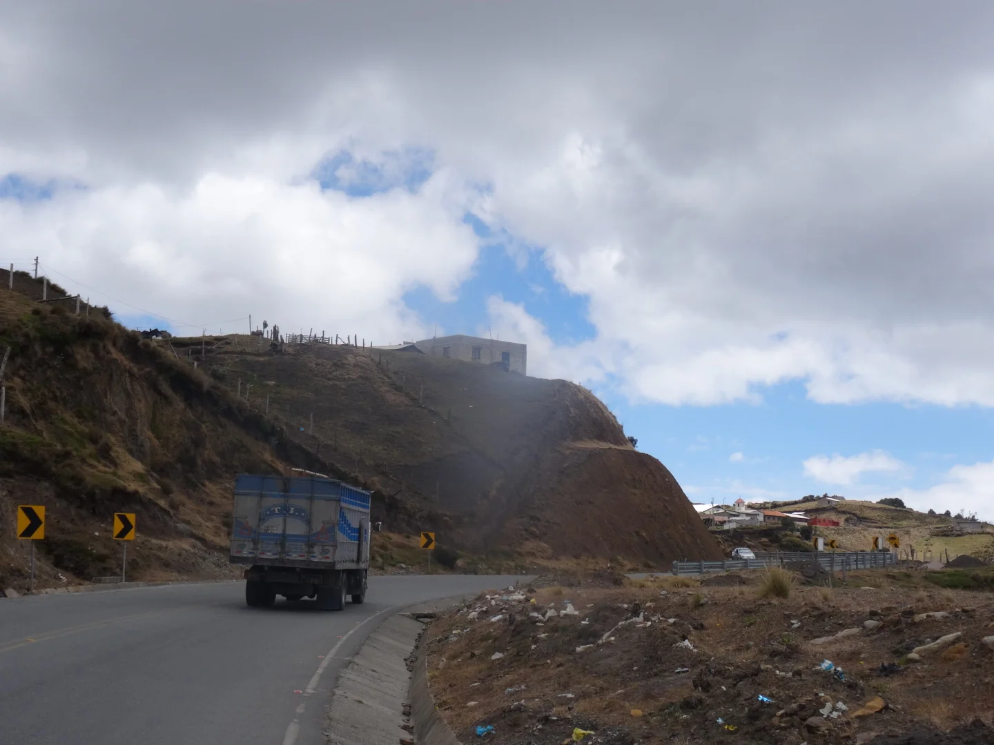 It was almost unbelievable how mean these valleys were, criss-crossing the mountains from all directions. The day included another dip down, then up and then down and then up again. Nearing the end of a paved climb I caught the brick truck to the top. Very exciting to take a break in exchange for numb hands.