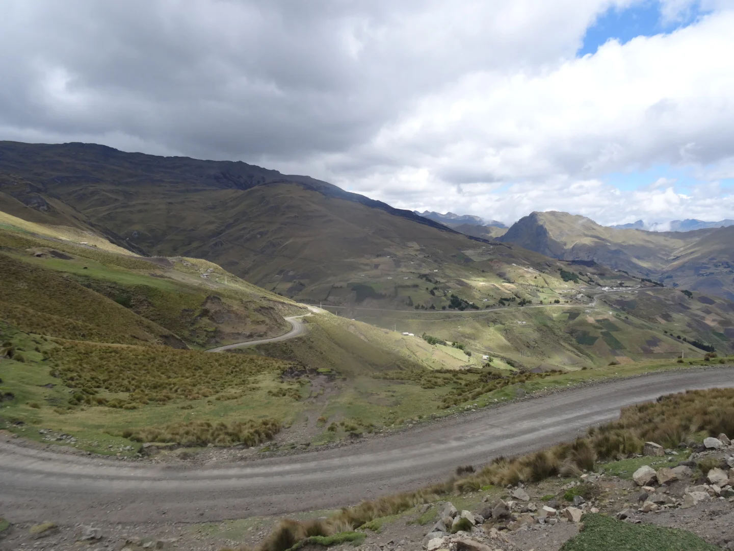 At the main entrance to the Quilotoa, I was asked to pay $1 for a bicycle at a brand new toll booth, maybe they are trying to cover the building costs of the toll booth. There was a dirt road 500m up that was free. Another chance to look at the lagoon but I was mostly looking at the two goofball dogs playing around me. The whole thing was super touristy, restaurants, donkeys, mules, new hostels and hotels going up and many people in new clothes. I met up with Josh an american biking from California and going to Chile. He told me of two russians also on the route but I did not get to meet them. Would have been cool to meet russians and see that they are not all crazy people like youtube has you thinking...