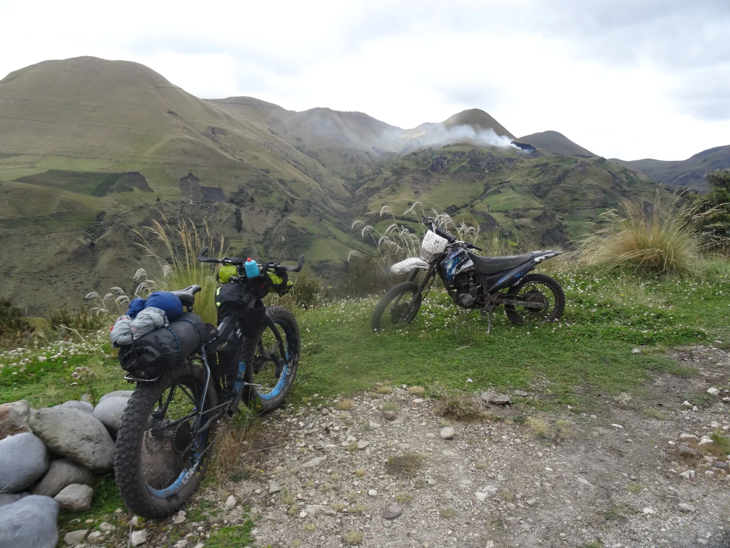Due to some complicated logistics of getting a camera from USA to Ecuador, I was left with some time to kill. I was surrounded by all these awesome volcanoes and plenty of routes to go on. One that caught my eye was riding up toward the Quilotoa crater lake and then looping back to Latacunga via the Trans Ecuador singletrack route (a section I was planing on skipping since the singletrack is guaranteed to be hike-a-bike while going uphill, downhill was another case.) To top it off, I can play around with the setup and take the bare minimum for 2 days of food plus camping/cooking.