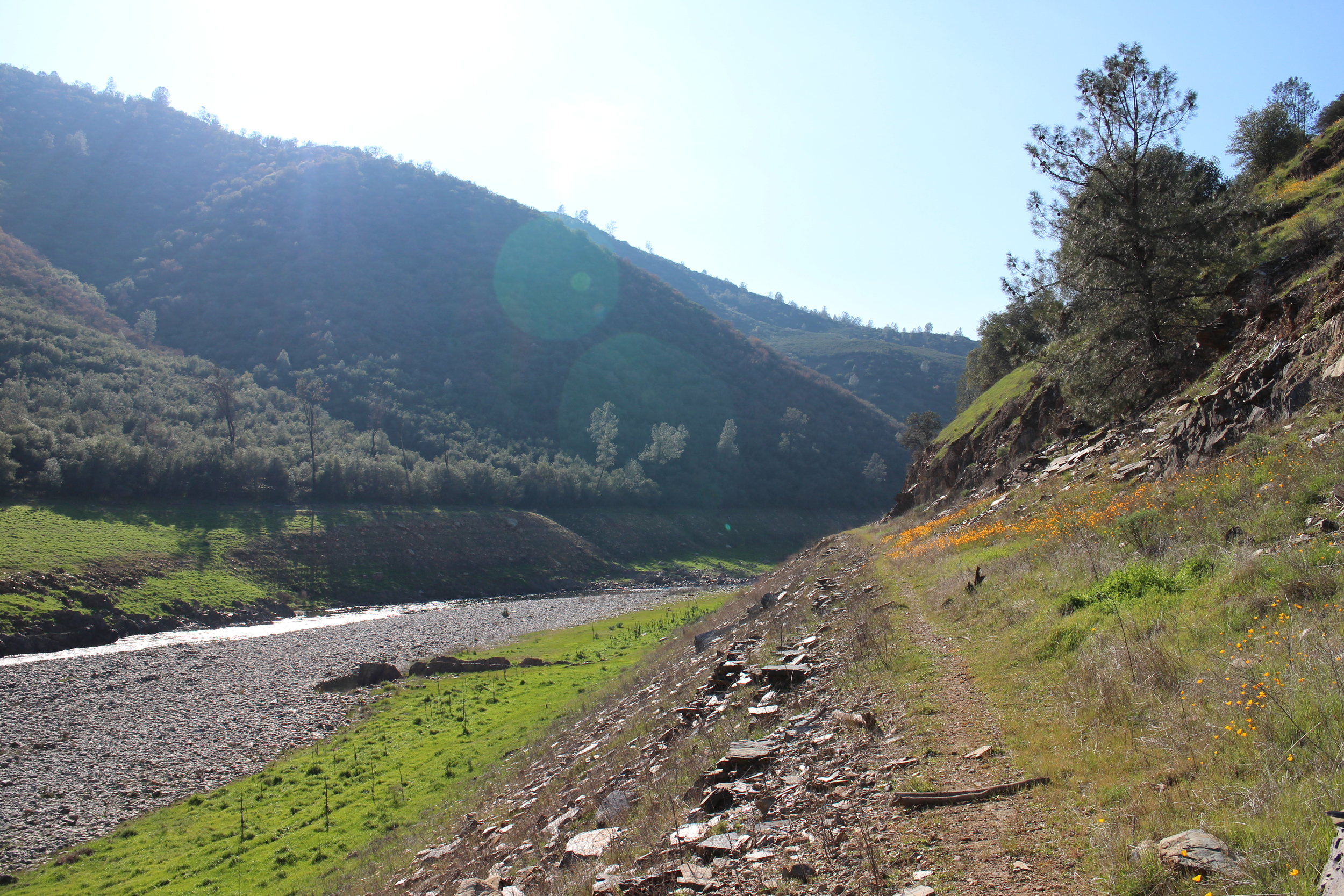 Somebody suggested a river trail to follow, warned me that there may be some pushing over stones but I was already set on going. He later drove up to me to tell me about a river crossing but said it was doable.